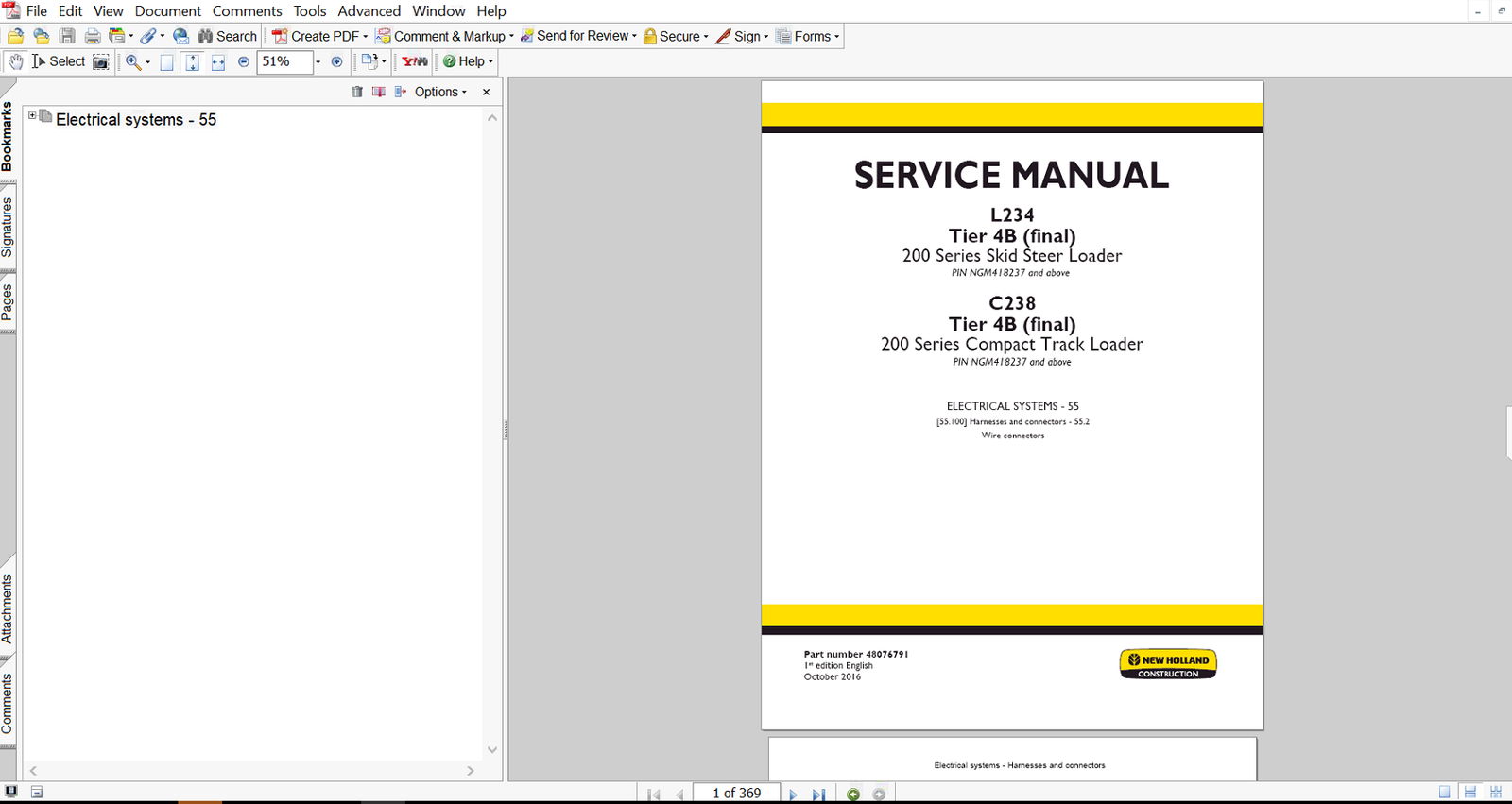 Whether you’re performing a quick service or a complete overhaul, this manual is your essential companion for maximizing the performance and longevity of your New Holland C238 Track Loader Electrical Systems