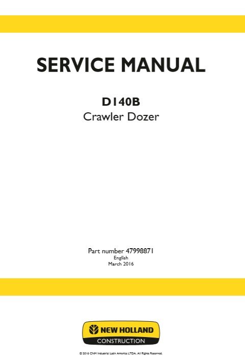 Ensure top performance and long-lasting durability of your New Holland D140B Dozer with this comprehensive Service Repair Manual. Designed specifically for professional technicians, mechanics, and equipment owners, this manual provides detailed instructions, diagrams, and specifications to perform maintenance, service, diagnostics, and repairs with confidence