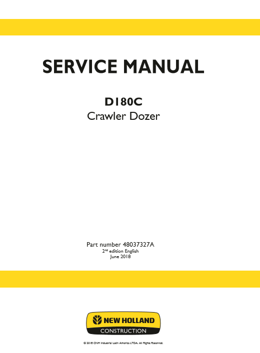 Ensure top performance and long-lasting durability of your New Holland D180C Dozer with this comprehensive Service Repair Manual. Designed specifically for professional technicians, mechanics, and equipment owners, this manual provides detailed instructions, diagrams, and specifications to perform maintenance, service, diagnostics, and repairs with confidence