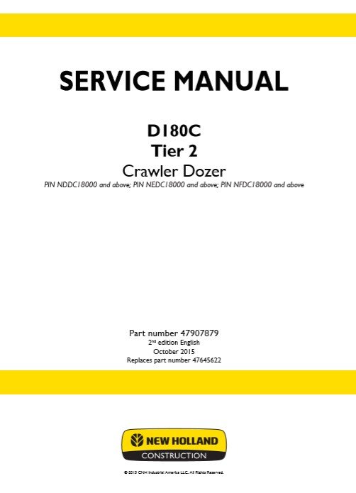 Whether you’re performing a quick service or a complete overhaul, this manual is your essential companion for maximizing the performance and longevity of your New Holland D180C Crawler Dozer