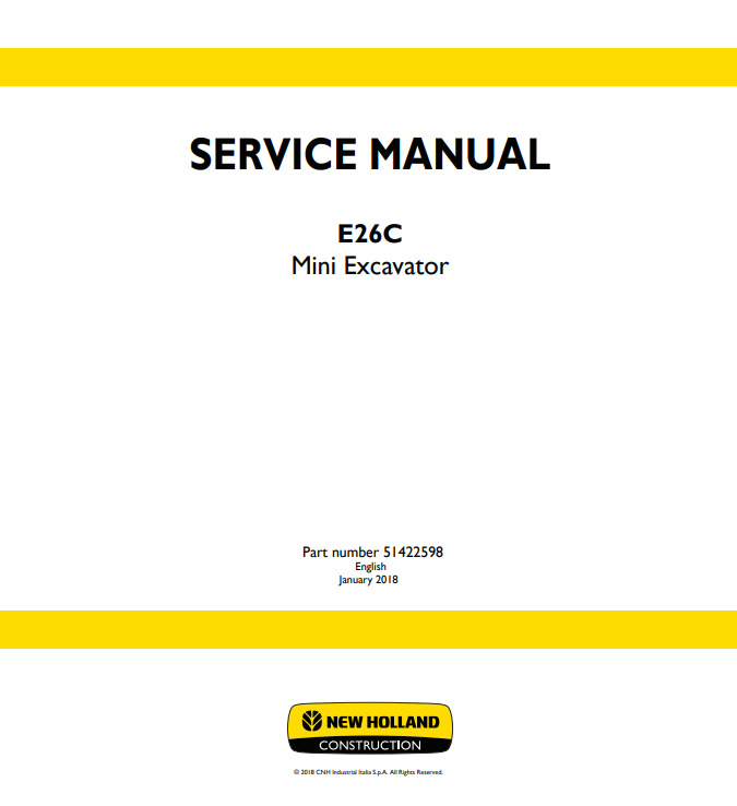 The New Holland E26C Mini Excavator Service Manual is an essential resource for maintaining and optimizing the performance of your equipment. This comprehensive guide provides detailed instructions, diagrams, and troubleshooting tips to ensure your excavator operates at peak efficiency. With clear, step-by-step procedures, you can confidently perform routine maintenance and repairs, extending the lifespan of your machine and minimizing downtime. Invest in this manual to enhance your operational knowledge and keep your New Holland E26C running smoothly
