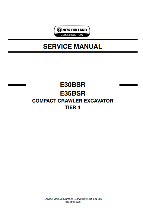 The New Holland E30BSR and E35BSR Excavator Service Repair Manual is an essential resource for maintaining and repairing your excavator efficiently. This comprehensive guide provides detailed instructions, diagrams, and troubleshooting tips to ensure optimal performance and longevity of your equipment. With easy-to-follow steps and expert insights, you can confidently tackle repairs and keep your excavator running smoothly, minimizing downtime and maximizing productivity. Invest in this manual to enhance your maintenance routine and safeguard your investment