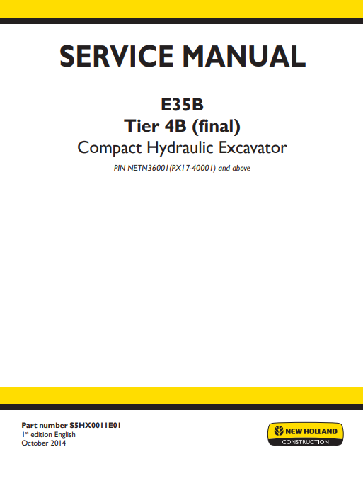 The New Holland E35B Excavator Service Repair Manual is an essential resource for maintaining and repairing your excavator with confidence. This comprehensive guide provides detailed instructions, diagrams, and troubleshooting tips to ensure optimal performance and longevity of your equipment. With clear, step-by-step procedures, you can easily tackle repairs and maintenance tasks, saving time and reducing downtime. Invest in this manual to enhance your operational efficiency and keep your New Holland E35B running smoothly for years to come