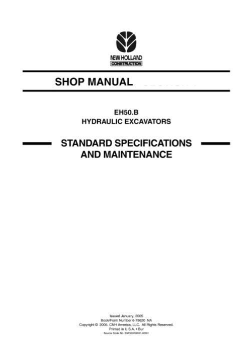 The New Holland EH50B Excavator Workshop Repair Manual is an essential resource for any technician or DIY enthusiast looking to maintain or repair their excavator with precision and confidence. This comprehensive manual provides detailed instructions, schematics, and troubleshooting tips tailored specifically for the EH50B model, ensuring that you have all the necessary information at your fingertips. With clear diagrams and step-by-step procedures, you can easily navigate through complex repairs and maintenance tasks, saving both time and money. Whether you are performing routine checks or tackling major repairs, this workshop manual empowers you to keep your excavator in optimal working condition, enhancing its performance and longevity. Invest in the New Holland EH50B Excavator Workshop Repair Manual today and ensure your machinery operates at its best for years to come