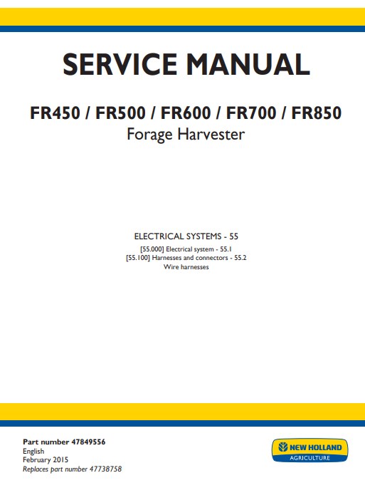 NEW HOLLAND FR450, FR500, FR600, FR700, FR850 Forage Harvester Service Repair Manual (Electrical system)