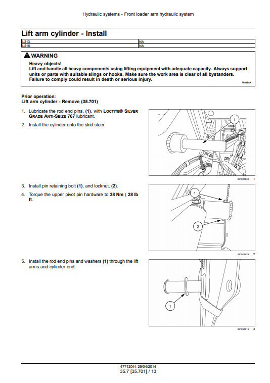New Holland L213 PIN NDM458999 and above