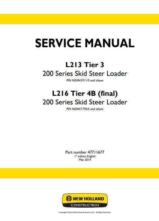 Service Repair Manual for New Holland L213 and L216 Skid Steer, detailing maintenance and repair proceduresNew Holland L213, New Holland L216 Skid Steer Service Repair Manual