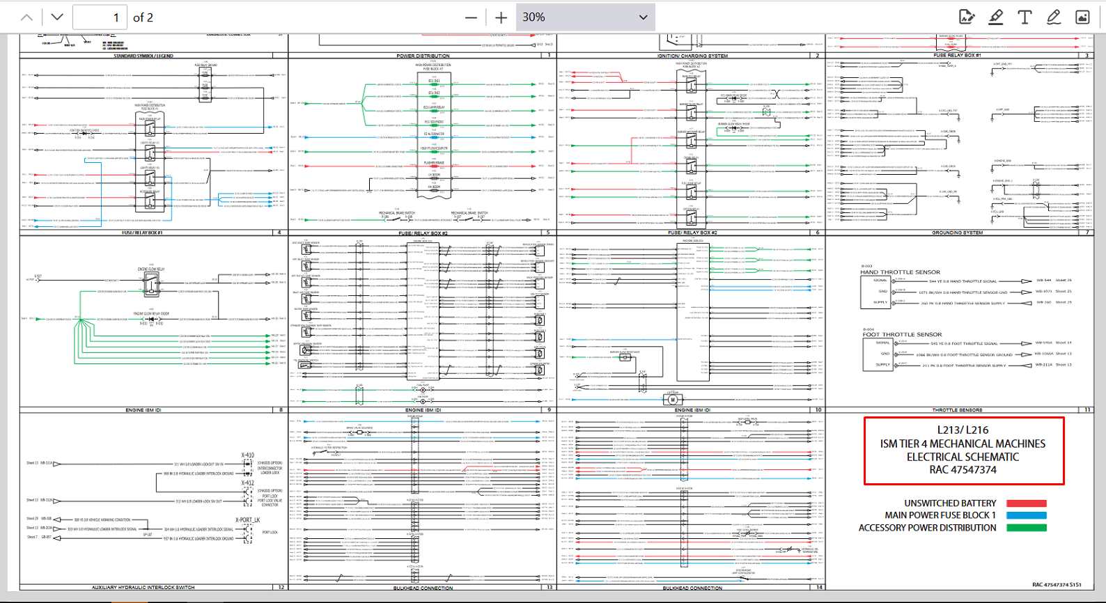 Simplify electrical troubleshooting and repairs with this complete set of wiring diagrams for the New Holland L216 Skid Steer. Whether you’re a professional technician or a hands-on equipment owner, these factory-grade schematics provide everything you need to understand and service the machine’s electrical system.