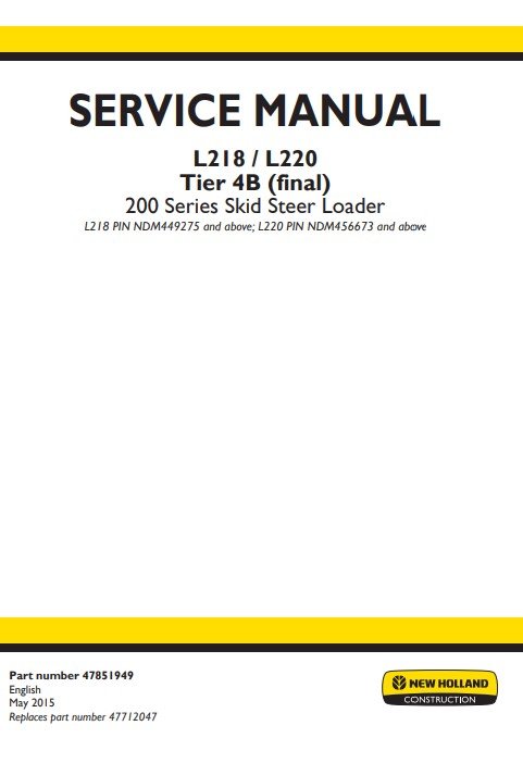 New Holland L218 and L220 200 Series Skid Steer Loader Tier 4B service repair manual with detailed maintenance instructionsNEW HOLLAND L218, L220 200 Series Skid Steer Loader Service Repair Manual