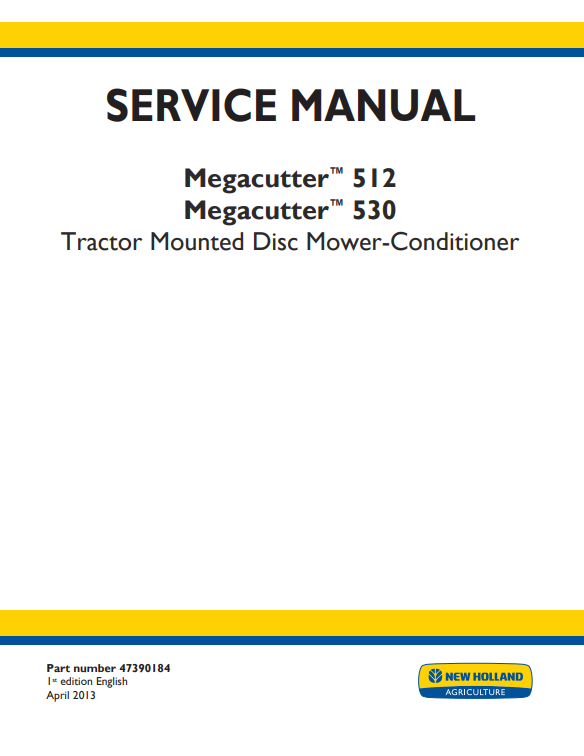 New Holland Megacutter 512, Megacutter 530 Tractor Mounted Disc Mower-Conditioner Service Manual