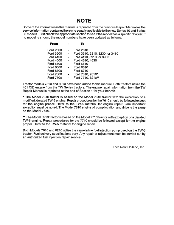 New Holland Series 10, New Holland Series 30 Tractor Service Manual