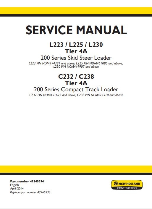 The New Holland 200 Series Skid Steer Loader Service Repair Manual is an essential resource for maintaining and repairing your equipment efficiently. This comprehensive guide provides detailed instructions, diagrams, and troubleshooting tips to ensure optimal performance and longevity of your skid steer loader. With clear, step-by-step procedures, you can confidently tackle repairs and maintenance tasks, saving time and reducing downtime. Invest in this manual to enhance your operational efficiency and keep your machinery running smoothly