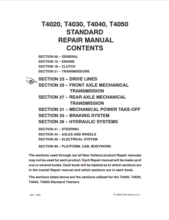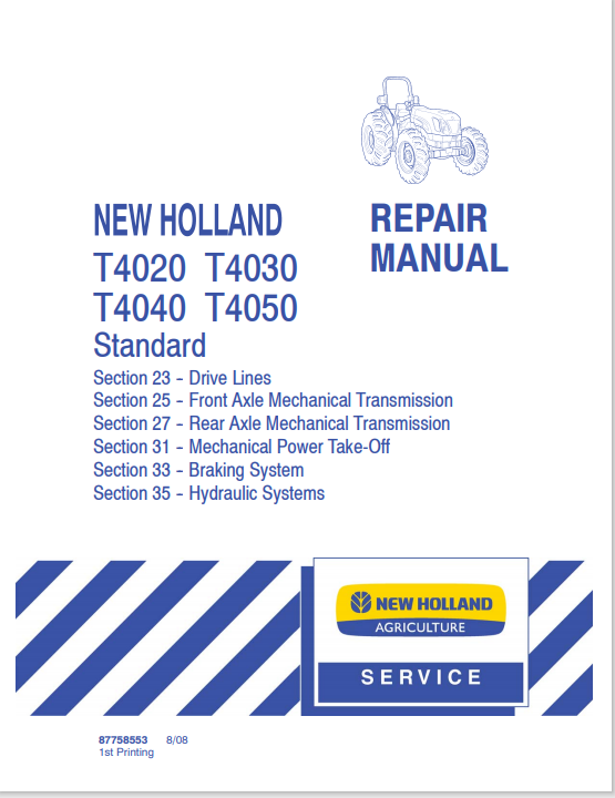 New Holland T4020, T4030, T4040, T4050 Standard Tractor Repair Manual