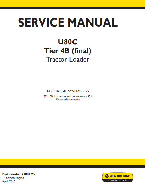 Service repair manual for New Holland U80C Tier 4B tractor, detailing electrical systems and troubleshooting guidelinesNew Holland U80C Tier 4B Tractor Service Repair Manual (ELECTRICAL SYSTEMS)
