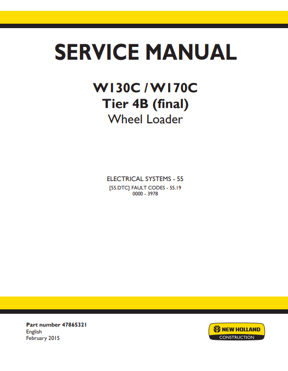 New Holland W130C, W170C Tier 4B (Final) Wheel Loader Service Manual