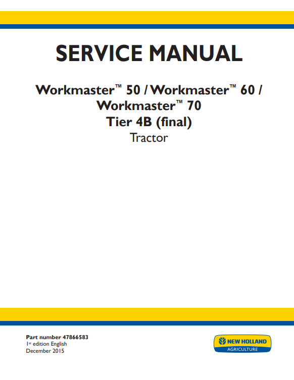 New Holland Workmaster 50, Workmaster 60, Workmaster 70 Tier 4B (final) Tractor Service Manual