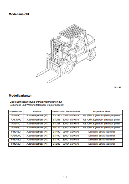 Diese Betriebsanleitung enthält Informationen zur Bedienung und Wartung folgender Staplermodelle: