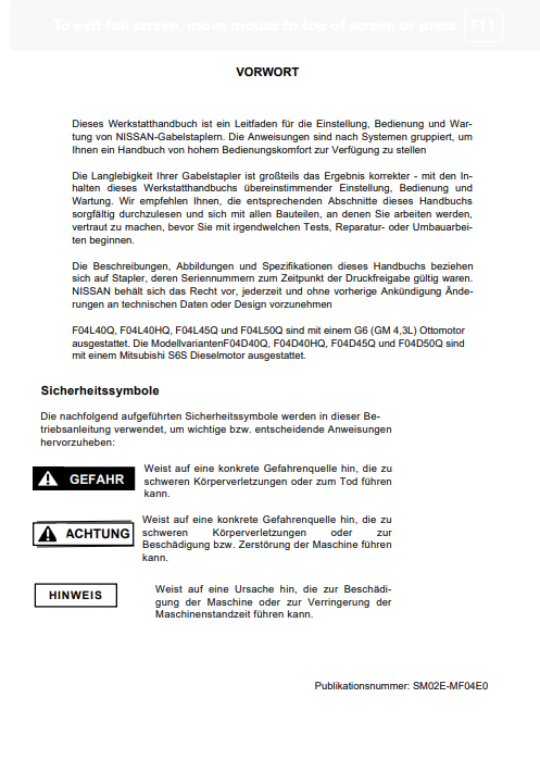 The Factory was highly recommended use this manual for Technicians before you touch your NISSAN Forklift