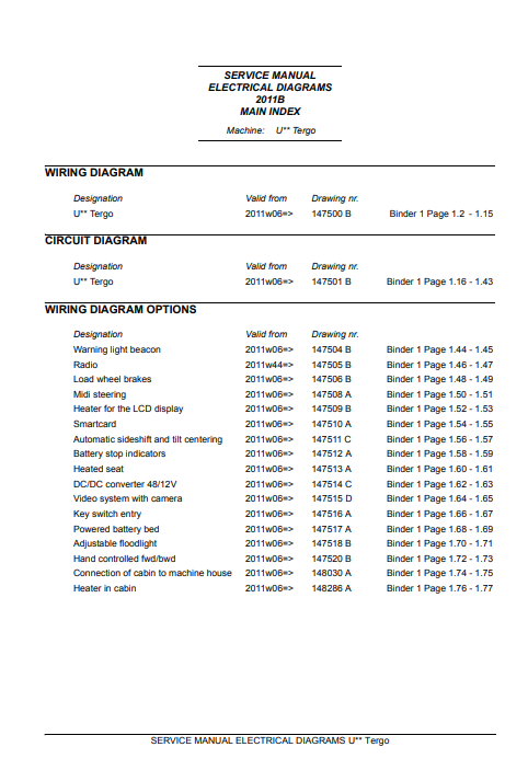 Enhance your maintenance and repair capabilities with the NISSAN Forklift U Series 2011 Electrical Diagrams. This comprehensive guide provides detailed schematics and wiring diagrams specifically designed for the U Series, ensuring you have the precise information needed to troubleshoot and resolve electrical issues efficiently. With clear illustrations and easy-to-follow instructions, this resource is essential for technicians and operators looking to optimize performance and minimize downtime. Invest in your operational excellence today with this indispensable tool for your NISSAN forklift