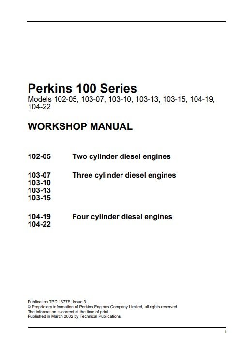 Perkins 100 Series Workshop Manual