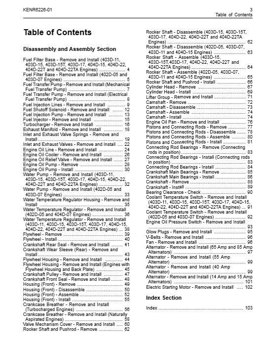 Perkins 402D, 403D, 404D Disassembly & Assembly Manual