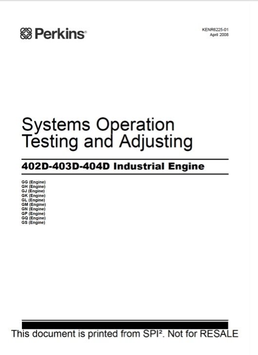 Perkins 402D-403D-404D Industrial Engine Testing and Adjusting Manual