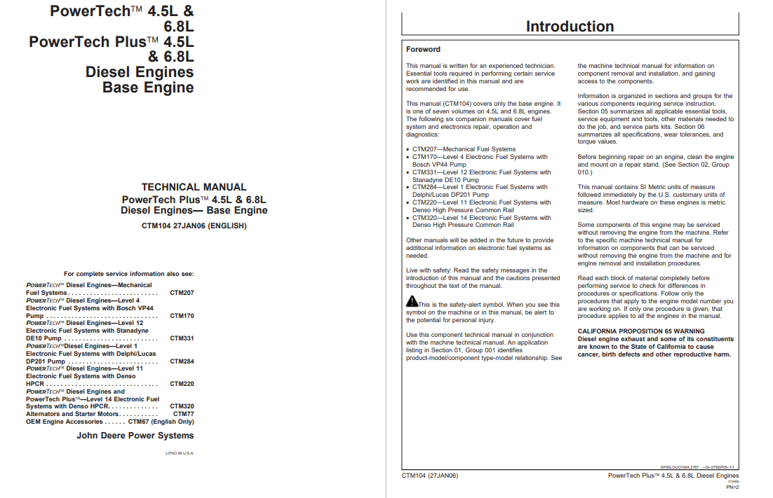 Power Tech Plus 4.5L & 6.8L Diesel Engines Technical Manual (John Deere Power Systems)