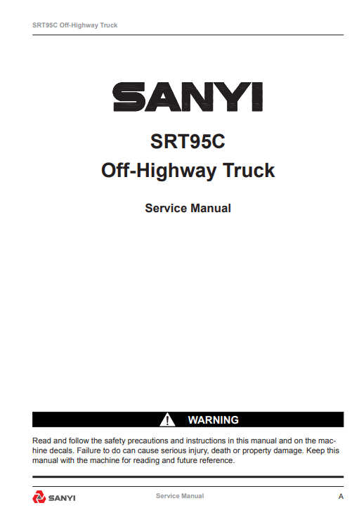 The SANY SRT95C Rigid Off-Highway Mining Truck Service Repair Manual is an essential resource for maintaining and servicing your heavy-duty mining equipment. This comprehensive guide provides detailed instructions, diagrams, and troubleshooting tips to ensure optimal performance and longevity of your truck. With clear, step-by-step procedures, it empowers operators and technicians to efficiently address repairs and maintenance tasks, minimizing downtime and maximizing productivity on the job site. Invest in this manual to enhance your operational efficiency and safeguard your investment in SANY machinery