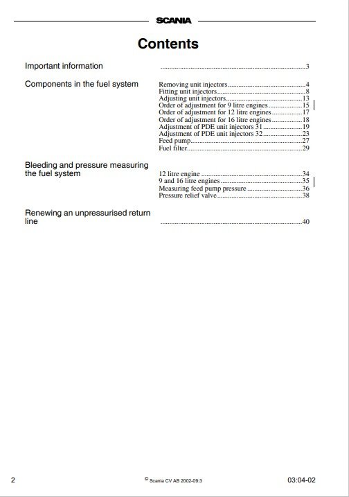 Scania Engines 9 12 16 PDE Unit Injector Workshop Manual