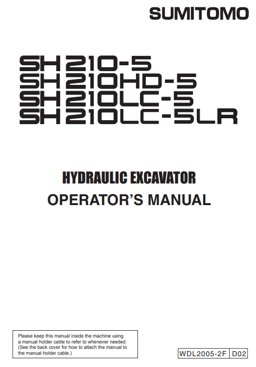 Operator's manual cover for Sumitomo SH210-5, SH210HD-5, SH210LC-5, and SH210LC-5LR excavatorsSumitomo SH210-5, Sumitomo SH210HD-5, Sumitomo SH210LC-5, Sumitomo SH210LC-5LR Operator’s Manual