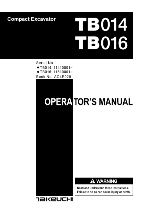 Takeuchi TB014 Excavator Operator’s Manual