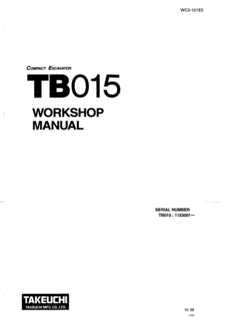 Takeuchi TB015 Excavator Workshop Repair Manual