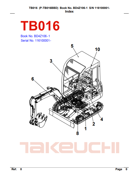 Takeuchi TB016 Excavator Parts Manual