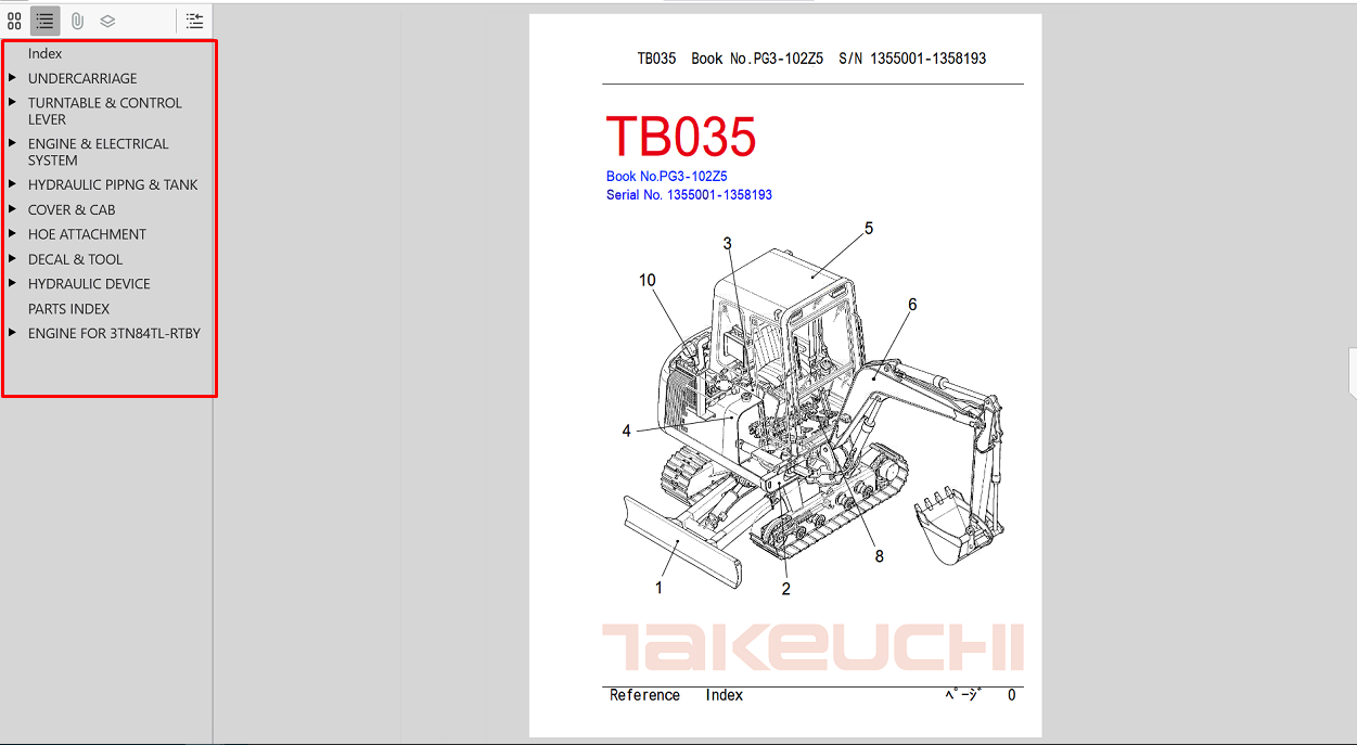 Takeuchi TB035 Excavator Parts Manual