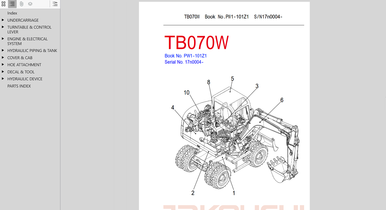 Takeuchi TB070W Excavator Parts Manual