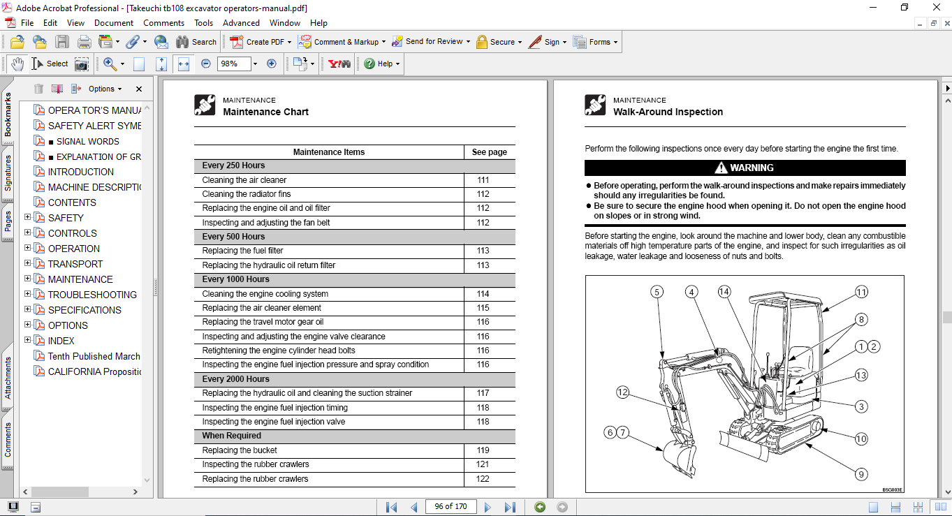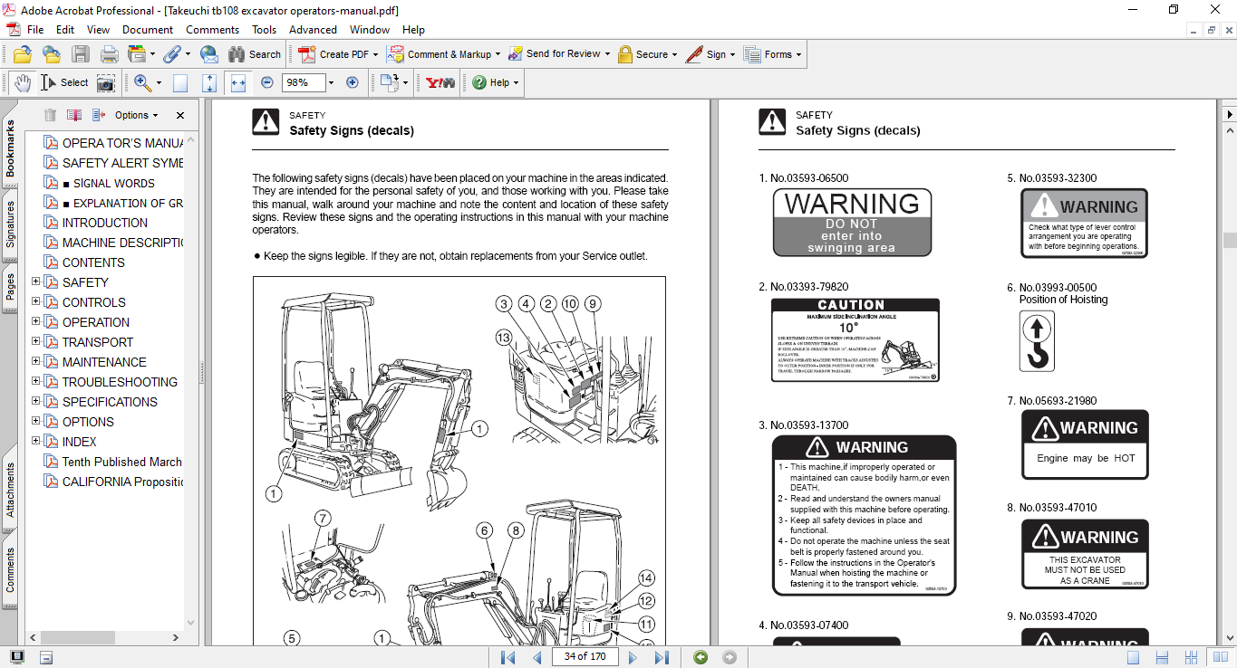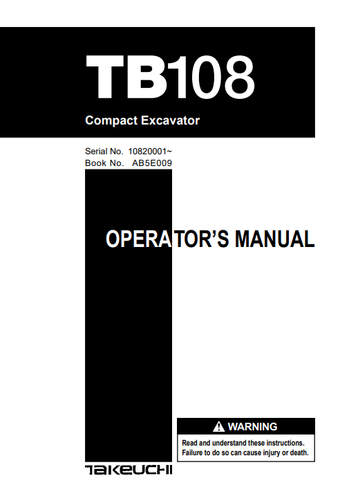 The Takeuchi TB108 Excavator Operator’s Manual is an essential resource for both new and experienced operators, providing comprehensive guidance on the safe and efficient operation of this compact excavator. This manual includes detailed instructions, maintenance tips, and troubleshooting advice, ensuring optimal performance and longevity of your equipment. With clear diagrams and easy-to-follow steps, you can enhance your productivity and minimize downtime, making this manual a must-have for any construction site