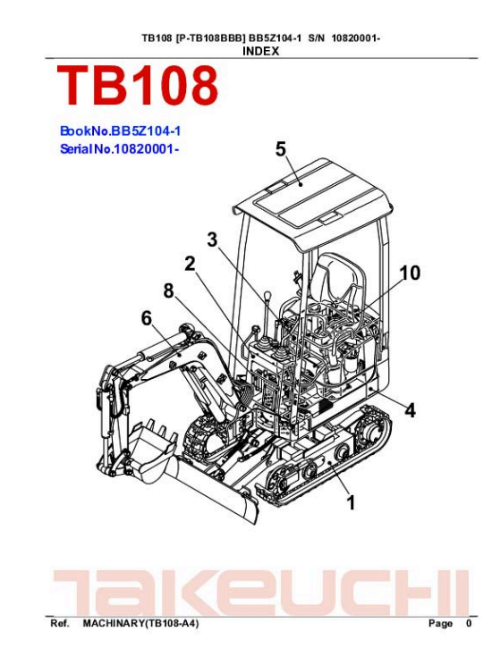 Takeuchi TB108 Excavator Parts Manual