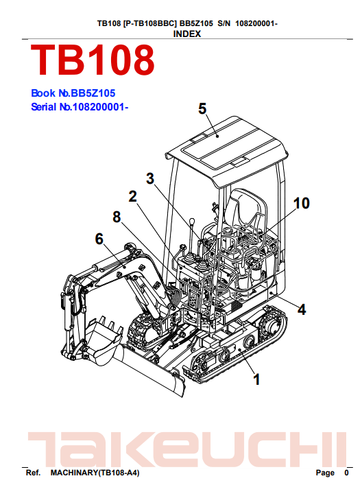 The Takeuchi TB108 Excavator Parts Manual is an essential resource for anyone looking to maintain or repair their excavator with precision and confidence. This comprehensive guide provides detailed diagrams, part numbers, and specifications, ensuring you can easily identify and source the correct components for your machine. With clear instructions and expert insights, this manual empowers you to enhance the performance and longevity of your Takeuchi TB108, making it a must-have for operators and technicians alike