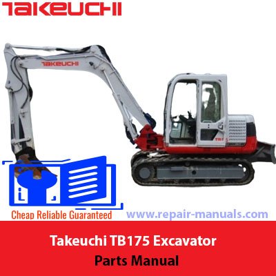 Takeuchi TB175 Excavator Parts Manual cover featuring an illustration of the excavator and detailed parts listTakeuchi TB175 Excavator Parts Manual