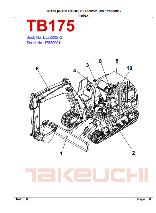The Takeuchi TB175 Excavator Parts Manual is an essential resource for anyone looking to maintain or repair their TB175 excavator with precision and confidence. This comprehensive manual provides detailed diagrams, part numbers, and specifications for all components of the excavator, ensuring that you can easily identify and source the correct parts for your machine. With clear illustrations and step-by-step instructions, this manual simplifies the repair process, saving you time and reducing the risk of costly mistakes. Whether you are a seasoned mechanic or a DIY enthusiast, the Takeuchi TB175 Parts Manual is designed to empower you with the knowledge needed to keep your excavator running smoothly and efficiently, ultimately enhancing its performance and longevity. Invest in this invaluable guide today and ensure your equipment remains in top condition for all your excavation needs