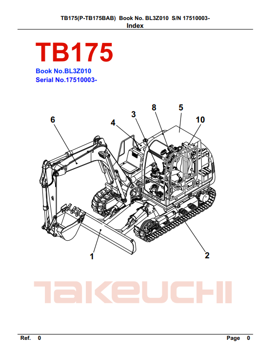 The Takeuchi TB175 Excavator Parts Manual is an essential resource for anyone looking to maintain or repair their TB175 excavator with precision and confidence. This comprehensive manual provides detailed diagrams, part numbers, and specifications for all components of the excavator, ensuring that you can easily identify and source the correct parts for your machine. With clear illustrations and step-by-step instructions, this manual simplifies the repair process, saving you time and reducing the risk of costly mistakes. Whether you are a seasoned mechanic or a DIY enthusiast, the Takeuchi TB175 Parts Manual is your go-to guide for keeping your excavator in optimal working condition, enhancing its performance and longevity. Invest in this invaluable tool today and ensure your excavator operates at its best for years to come