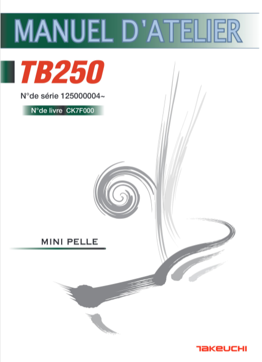Manuel de réparation d’atelier de pelle Takeuchi TB250