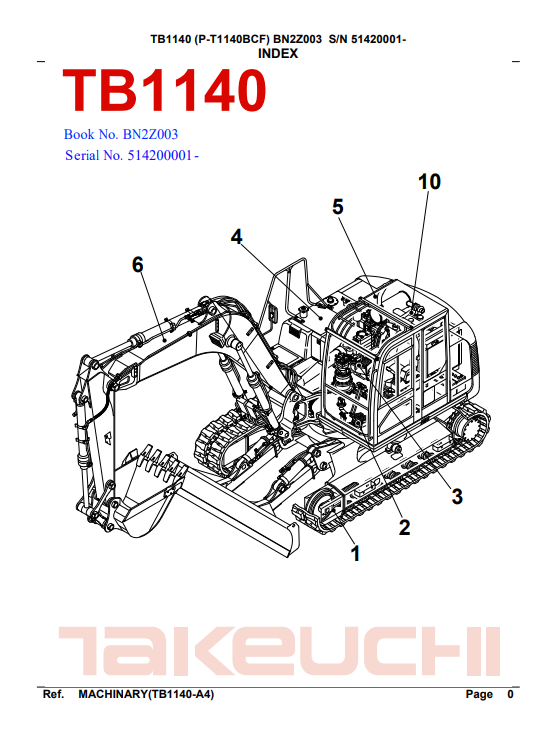 Takeuchi TB1140 Excavator Parts Manual