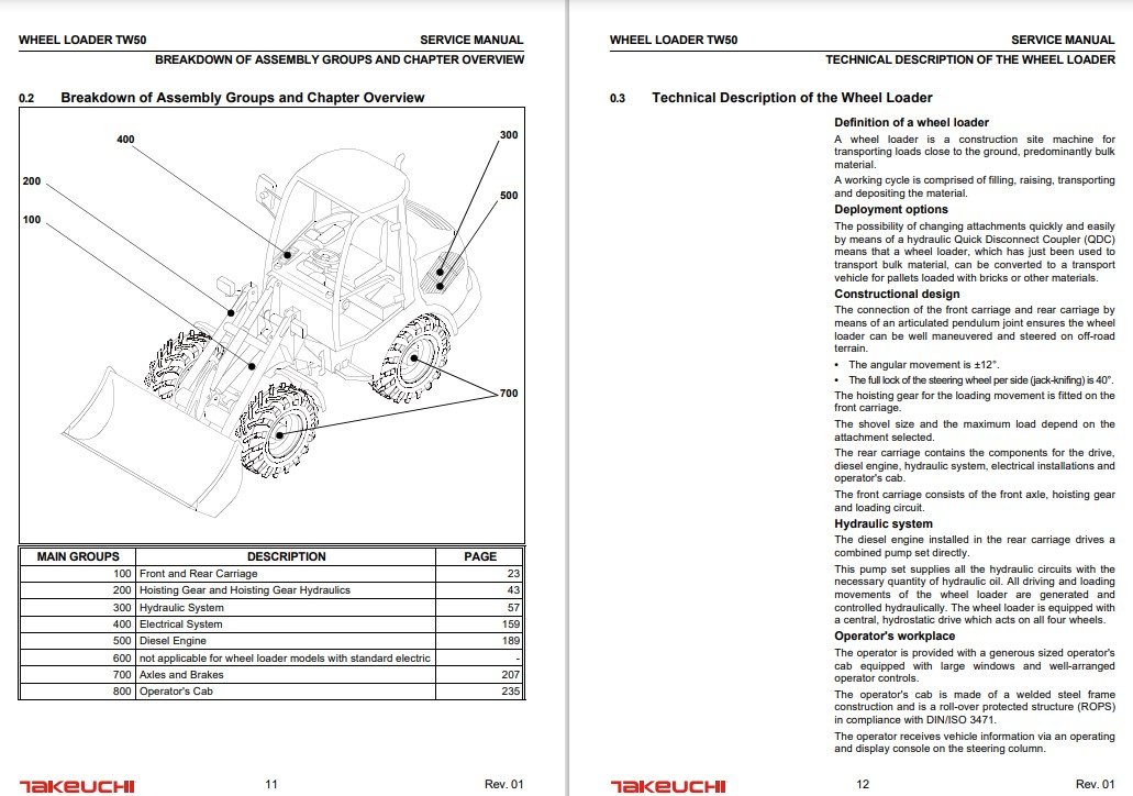 The Takeuchi TW50 Wheel Loader Service Repair Manual is an essential resource for maintaining and repairing your equipment efficiently. This comprehensive guide provides detailed instructions, diagrams, and troubleshooting tips to ensure optimal performance and longevity of your loader. With clear, step-by-step procedures, you can confidently tackle repairs and maintenance tasks, saving time and reducing downtime. Invest in this manual to enhance your operational efficiency and keep your Takeuchi TW50 running smoothly for years to come