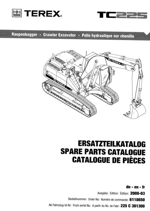 Terex TC225 Excavator Spare Parts Catalogue