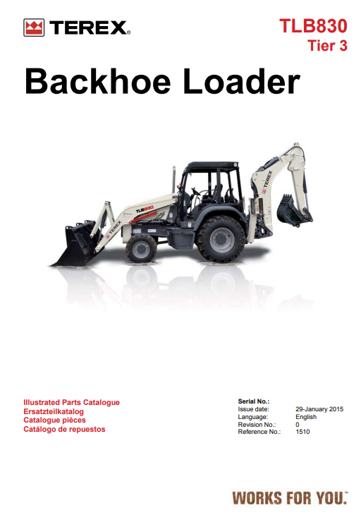 Terex TLB830 Tier 3 Backhoe Loader Parts Manual