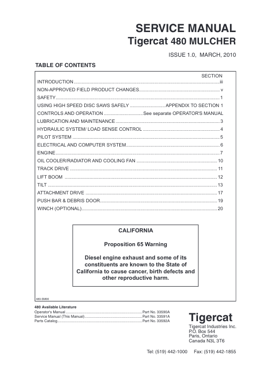 Package include Tigercat 480 Mulcher Service Repair Manual
