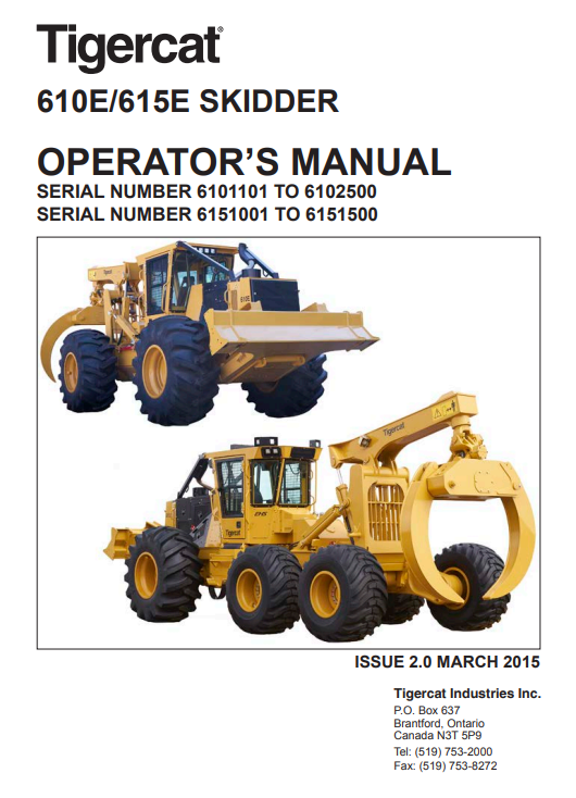 Tigercat 610E, 615E Skidder Operator’s Manual