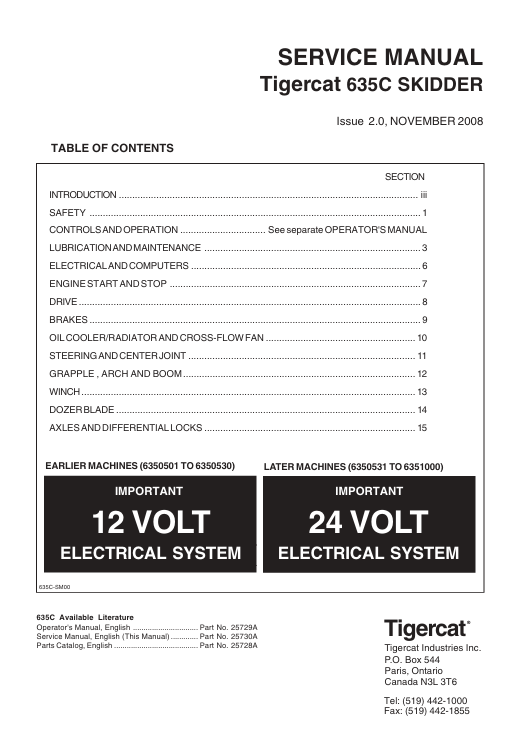 | Package include | Tigercat 635C Skidder Service Repair Manual |