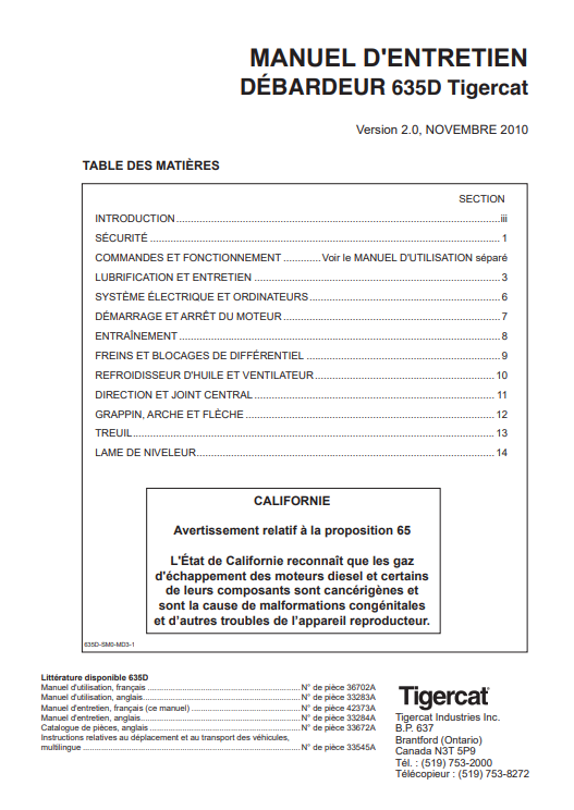 Tigercat 635D Skidder Maintenance Manual